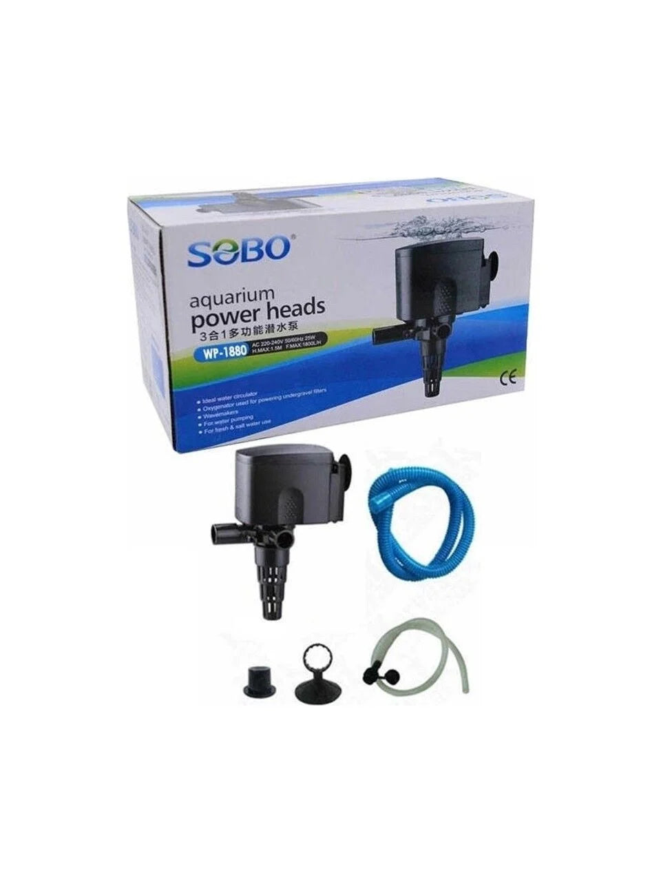 Sobo WP-1880 Kafa Motoru, ideal bir su sirkülasyonu sağlar ve hem tatlı hem de tuzlu su akvaryumları için uygundur. Kutusunda bulunan hava hortumu sayesinde, ihtiyaç duyulduğunda akvaryuma hava takviyesi yapabilir. Motoru elinize almadan önce mutlaka elektrik bağlantısını kesmelisiniz.